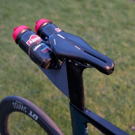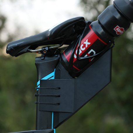 speziell entworfene, aerodynamische Flaschenhalter inkl. Garmin Varia Halterung für die Sattelstange von Zeitfahrrädern und Rennrädern, auch für Sattelstangen ohne Befestigungsgewinde.